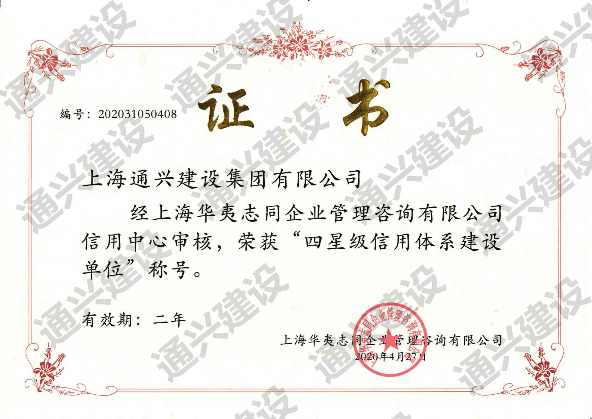 四星级信用体系建设单位称号